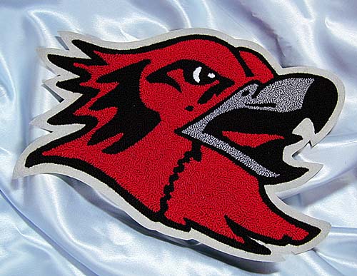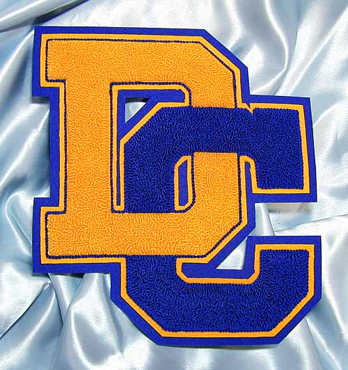 The 4" size is the most common. Cost for complex combination chenille and embroidered patches (like the one pictured to the right) is dependent upon colors and logo complexity. Generally, add $3.00 for an embroidered logo. |